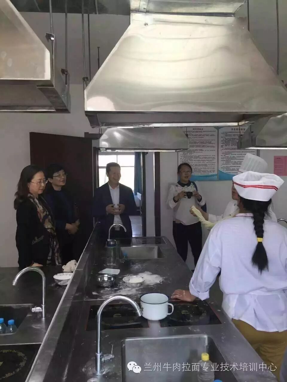 2016年5月11日,蘭州市民委主任黃凱、副主任謝立宏、經(jīng)濟(jì)處處長寇志軍,沈陽市民委主任一行蒞臨蘭州少數(shù)民族精準(zhǔn)扶貧、特色技能再就業(yè)培訓(xùn)基地——甘肅興隴蘭州牛肉拉面職業(yè)培訓(xùn)學(xué)?疾熘笇(dǎo)工作。