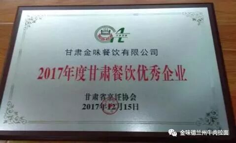 甘肅省烹飪協(xié)會2017年度年會暨五屆四次理事會上,甘肅金味餐飲有限公司以良好的企業(yè)信譽(yù)榮獲“2017年度甘肅餐飲優(yōu)秀企業(yè)。