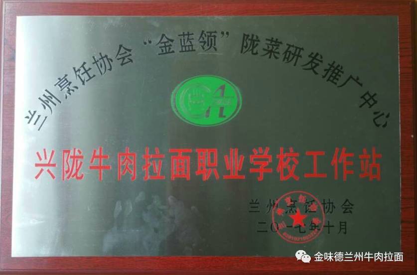 在蘭州烹飪協(xié)會第四屆第一次理事會暨隴菜創(chuàng)新發(fā)展研討會上,甘肅興隴蘭州牛肉拉面職業(yè)培訓(xùn)學(xué)校被評選為蘭州烹飪協(xié)會“金藍(lán)領(lǐng)”隴菜研發(fā)推廣中心工作站。
