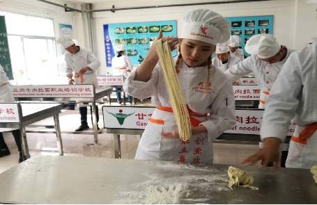 學(xué)校位于甘肅省蘭州市城關(guān)區(qū)魚兒溝16號(hào),占地1000多平方米,集蘭州牛肉面及西北面食、菜品培訓(xùn),就業(yè)指導(dǎo)、創(chuàng)業(yè)指導(dǎo)、蘭州牛肉面職業(yè)經(jīng)理人培訓(xùn)等為一體的綜合型、專業(yè)型權(quán)威的培訓(xùn)機(jī)構(gòu),面向全國、全世界招生。自2006年開辦以來,截止2019年培訓(xùn)和海內(nèi)外輸送牛肉拉面專業(yè)人才近40000人,除在“金味德”全國連鎖店安排就業(yè)外,學(xué)員遍布全國所有省市及臺(tái)灣地區(qū),海外遍及日本、美國、澳大利亞、法國、韓國等國家。培訓(xùn)中心為金味德品牌的發(fā)展及行業(yè)技術(shù)人才培訓(xùn)、輸送、提供了強(qiáng)大的保障。